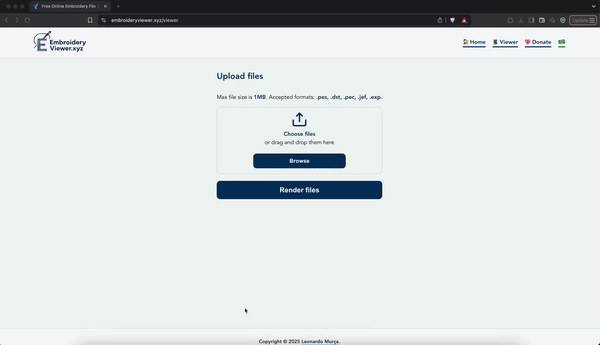 A free online tool to view embroidery files. Available at https://embroideryviewer.xyz.